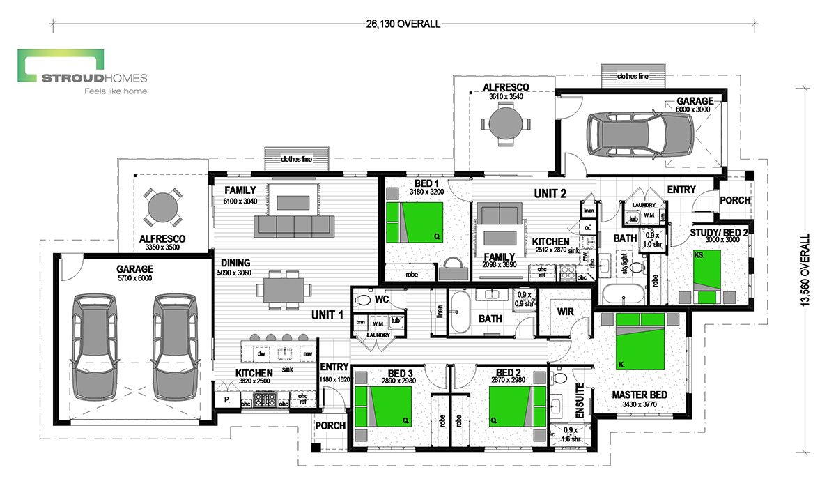 Rent both out or live in one and rent the other out! Great options to maximise your return with a Stroud Homes Duplex design.